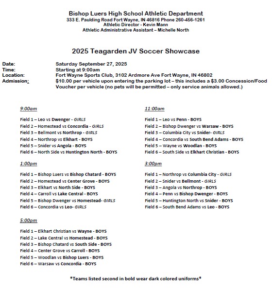 The Classic brings 30 of Indiana's best JV teams together for a day of soccer. The event is run in coordination with Bishop Luers High school. If interested in playing future events, please contact BLHS AD, Kevin Mann,